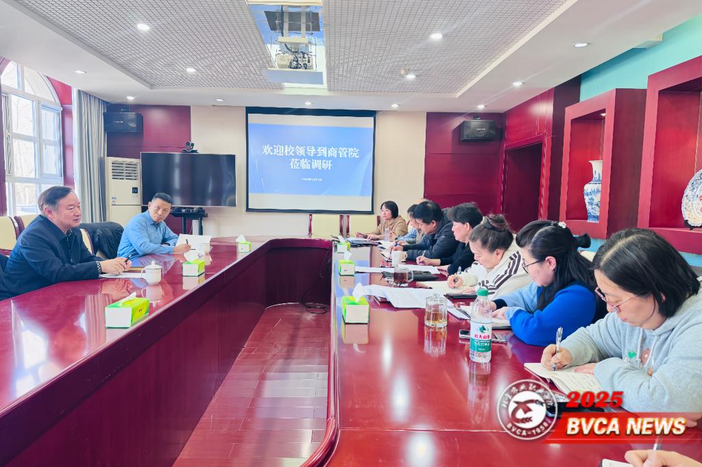 12月1日,党委副书记周洪生到商务与管理学院调研党建工作,组织部专职组织员张洪伟一同调研,学院领导班子及各党支部书记参加。