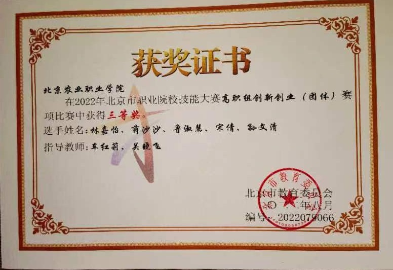 北京市职业院校技能大赛+高职组创新创业(团体)赛三等奖