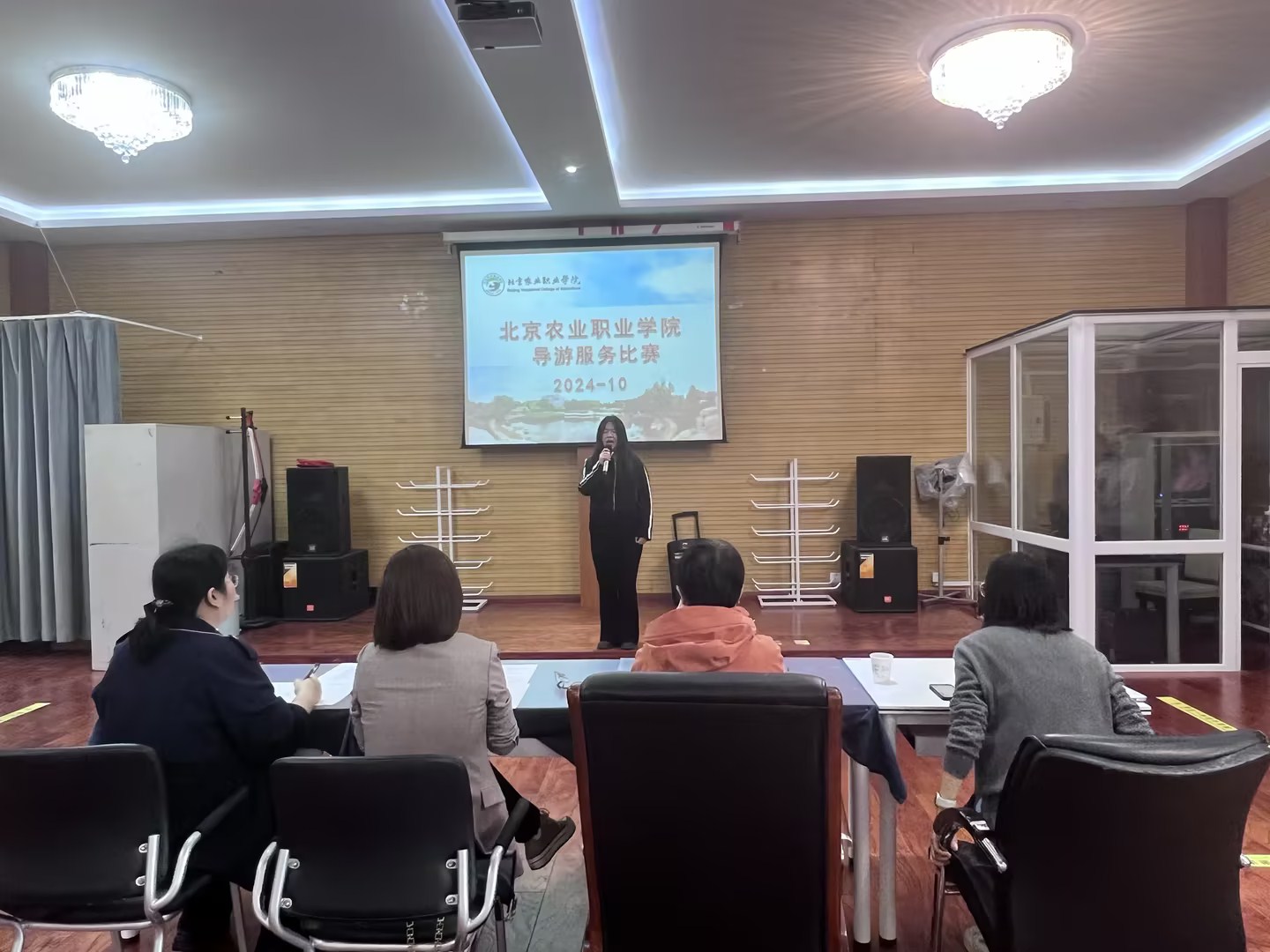 为进一步提升学生的实践技能,丰富学生校园文化生活,充分发挥学生技能比赛在促学、促教、促改方面的作用,旅游管理专业于2024年10月16日下午在形体实训室成功举办了导游服务技能比赛。来自贯通旅游2011班的6名学生参与比赛,旅游管理专业4名教师现场参加并担任评委。
