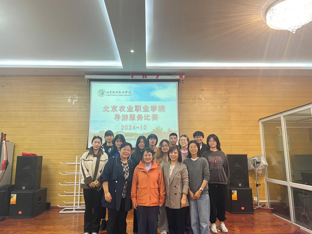 本次比赛严格参照北京市职业学院导游比赛规程,共分为理论知识测试、导游讲解和才艺展示三个环节。理论知识测试题目全部来自市赛理论题库,主要考察的是学生在带团过程中出现各类问题的处理技巧,此环节进一步检验了学生的专业知识水平;导游讲解环节,学生选取北京5A级旅游景点或者世界遗产,做3分钟的导游讲解,考查学生现场讲解能力;在才艺展示环节,学生表演一段符合导游职业特点的才艺,现场氛围热烈愉快。评委们根据选手的整体表现进行综合评判,最终吴希伦同学获得一等奖,陶雨佳获得二等奖,高启轩和杜知诺获得三等奖。