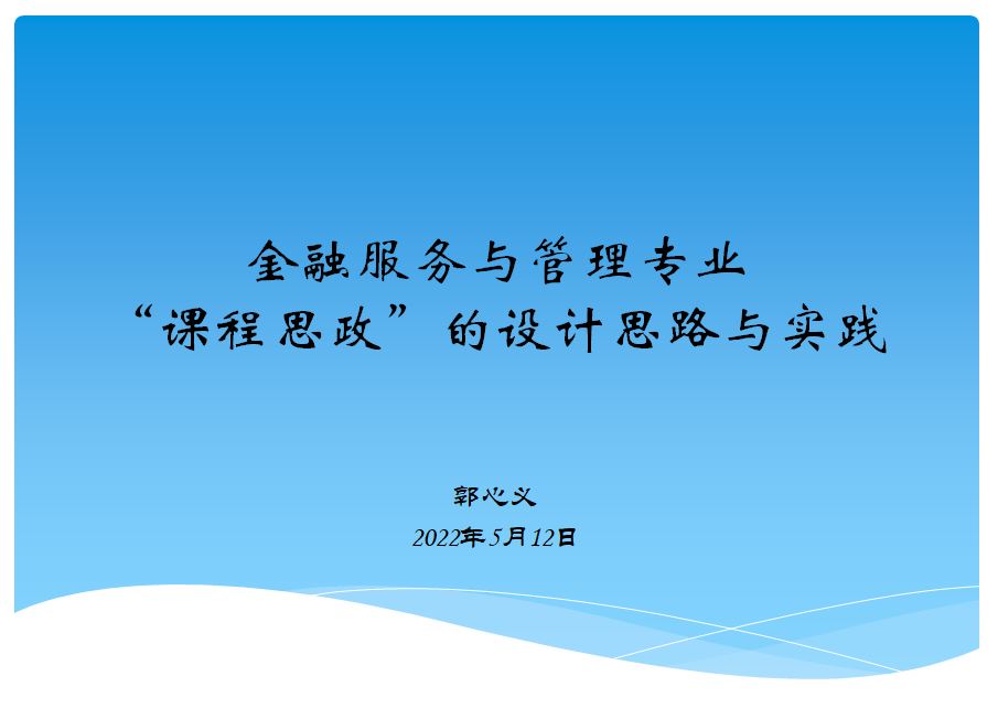 5月12日下午金融服务与管理专业邀请督导室诸刚老师、财金系周晖主任与专业全体教师一起参加了“专业课教学中如何融入思政元素以及设计思路共享交流会”。金融服务与管理专业郭心义老师从专业思政的角度以“金融服务与管理专业课程思政的设计思路与实践”为题,从“课堂平台融入思政、网络平台助学思政、课外平台拓展思政和实践平台强化思政”四个方面进行了主题共享交流,同时提出了应该从“注重第一课堂思政教育效果、注重融入思政案例的选取和注重教师思政水平的提高”三个方面来进一步提高专业课程思政的成效。专业的其他教师也根据各自的体会提出了一些切实可行的好想法、做法和经验,整体交流效果较好。