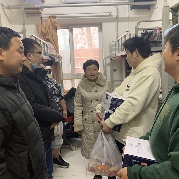 12月9日中午,现代服务管理系党总支书记陈丽清带领学办老师来到宿舍楼内慰问三名献血学生,为同学们送去了温暖与关怀。