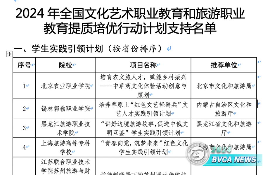 8月27日,文化和旅游部办公厅公布了2024年全国文化艺术职业教育和旅游职业教育提质培优行动计划支持名单,Beat365《培育农文旅人才,赋能乡村振兴——中草药文化体验活动创意与策划》项目荣获学生实践引领计划支持,且为北京市唯一入选的项目。