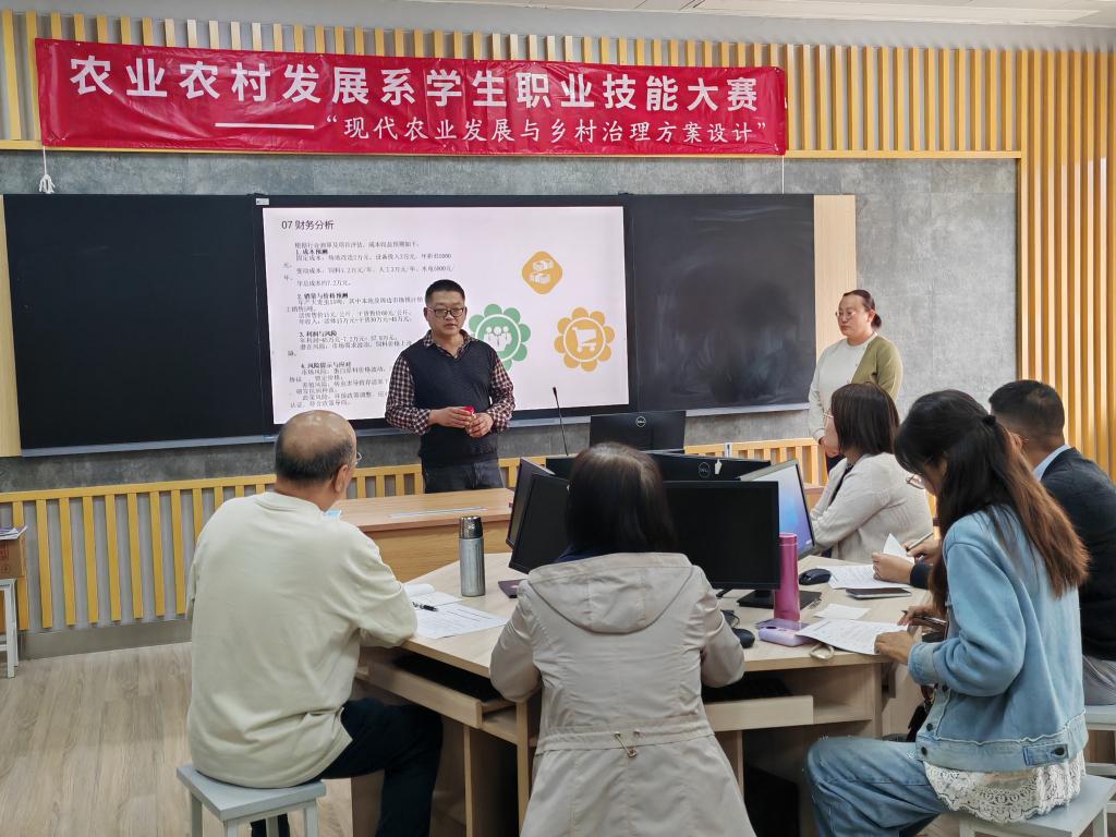 2025年10月15日下午,商务与管理学院农业农村发展系在学校香山校区举行了第二届“现代农业发展与乡村治理方案设计”学生职业技能大赛决赛,并取得圆满成功。商务与管理学院张晖院长和贾艳琼副院长进行了现场观摩。