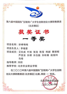 第六届中国国际“互联网+”大学生创新创业大赛(北京赛区) 一等奖;