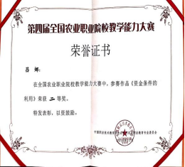 全国农业职业院校“禾苗杯”青年教师专业课程设计大赛三等奖;