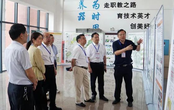 教育部职业教育与成人教育司二级巡视员刘杰一行观看参赛作品展板