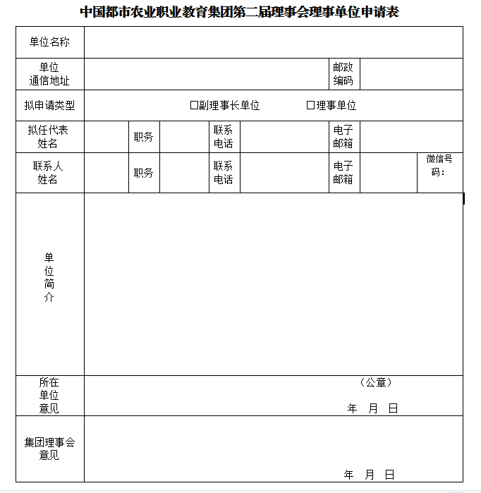 中国都市农业职业教育集团理事单位申请表