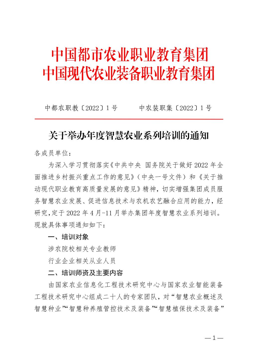 关于举办年度智慧农业系列培训的通知