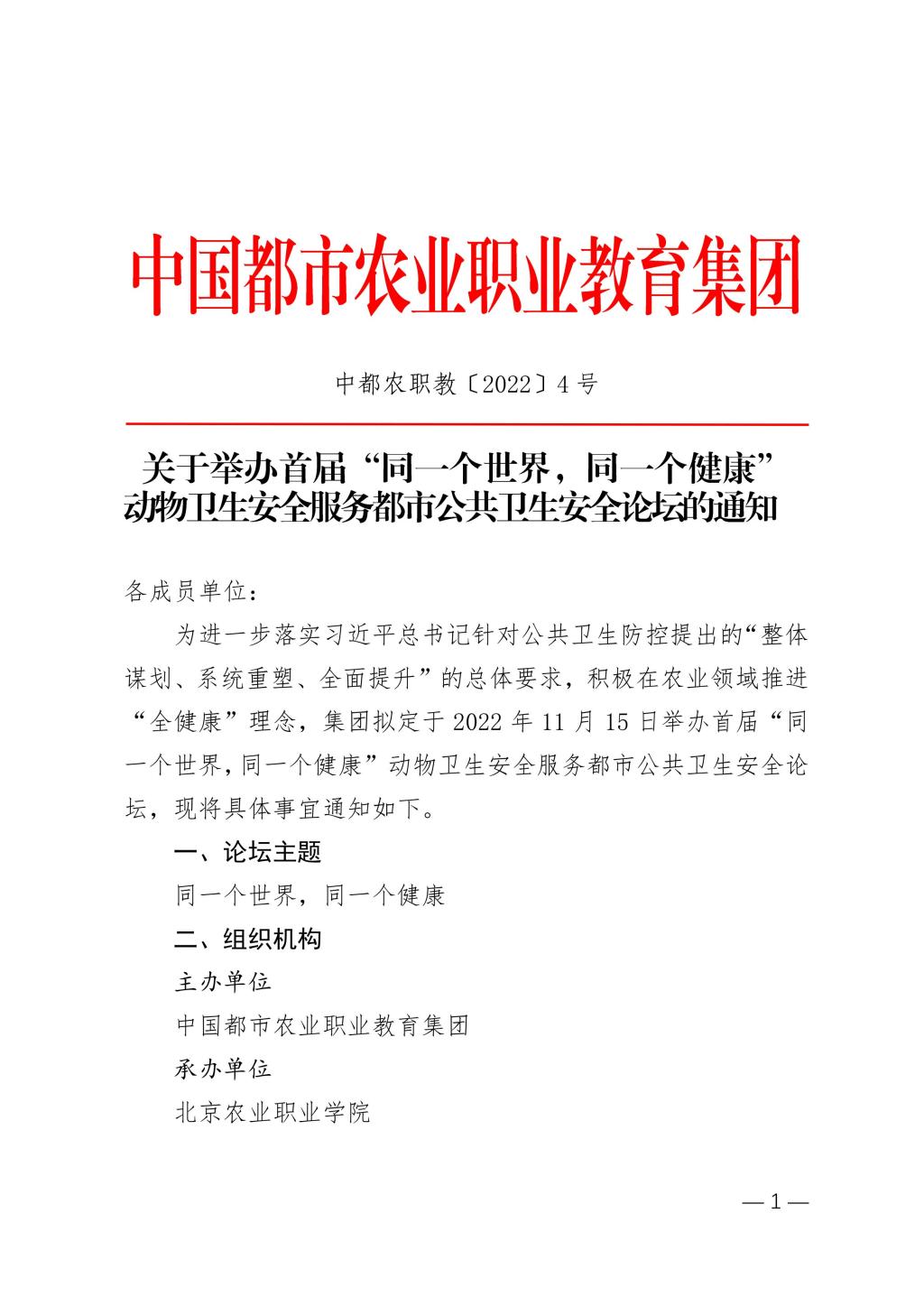 关于举办首届“同一个世界,同一个健康”动物卫生安全服务都市公共卫生安全论坛的通知