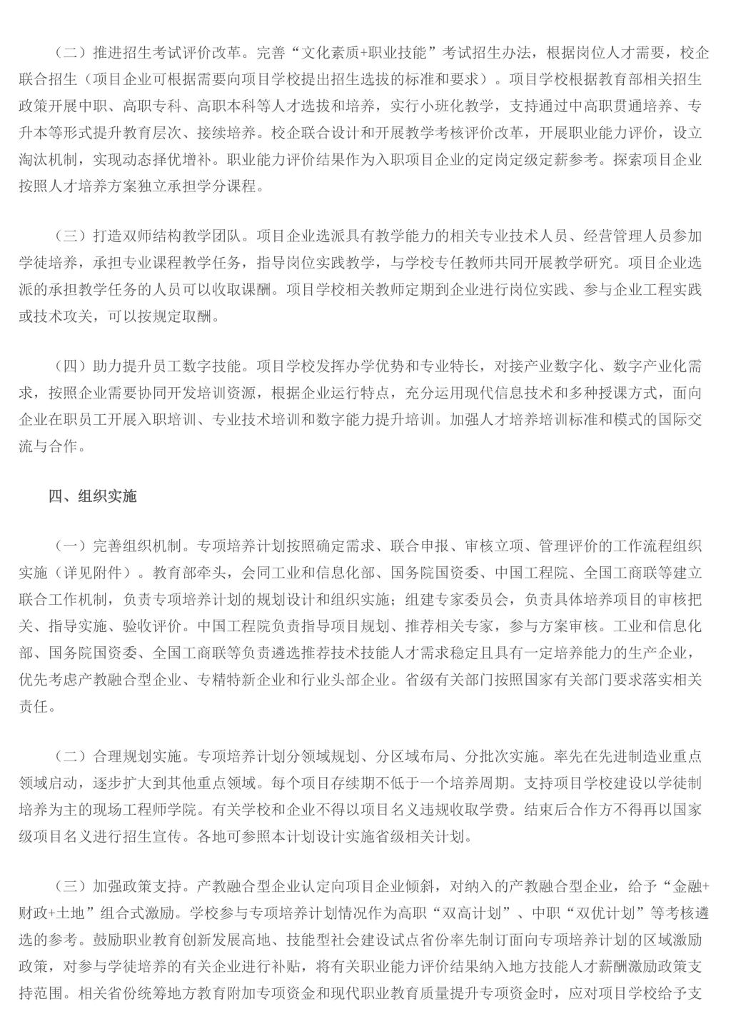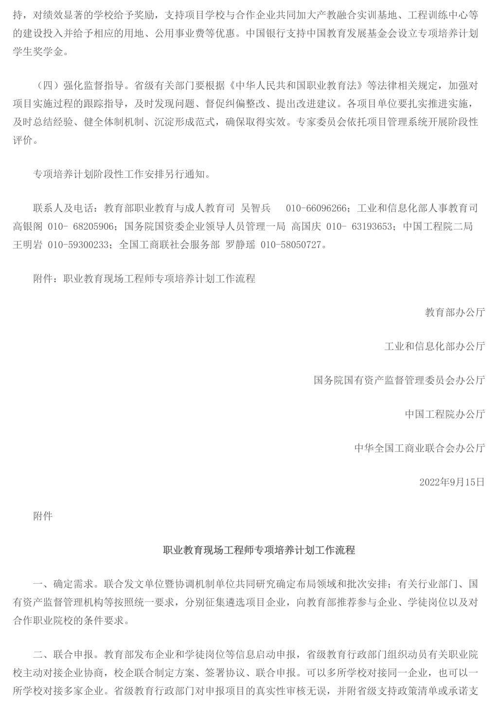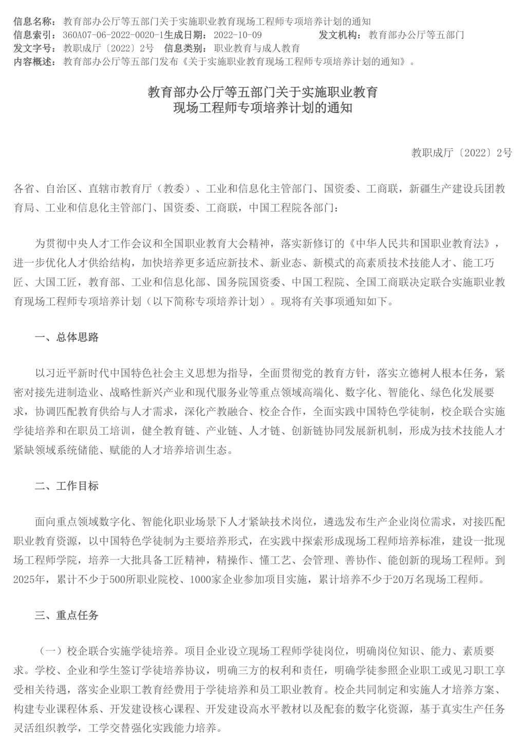 教育部办公厅等五部门关于实施职业教育现场工程师专项培养计划的通知