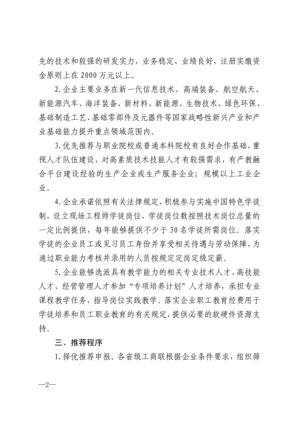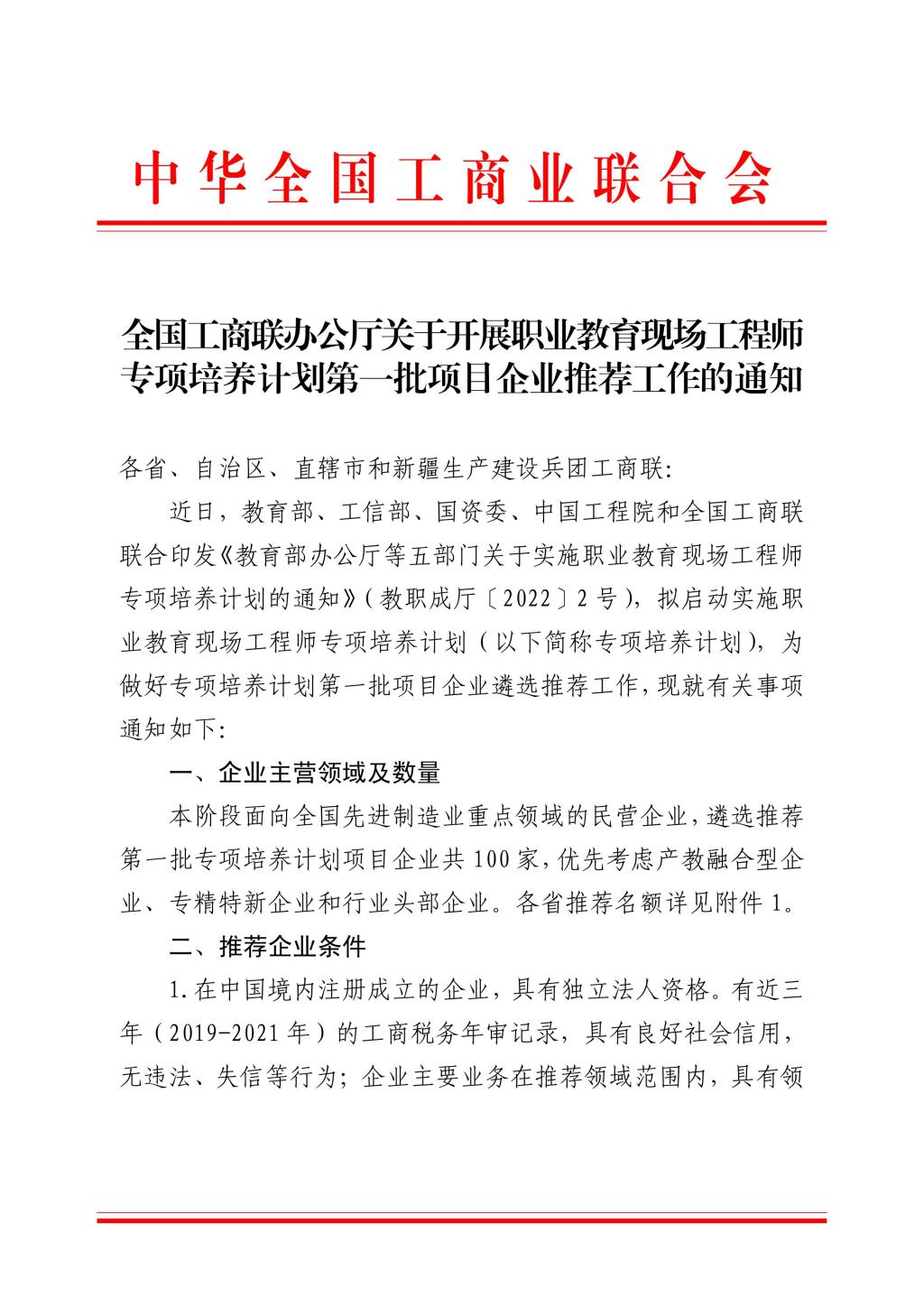 全国工商联办公厅关于开展职业教育现场工程师专项培养计划第一批项目企业推荐工作的通知