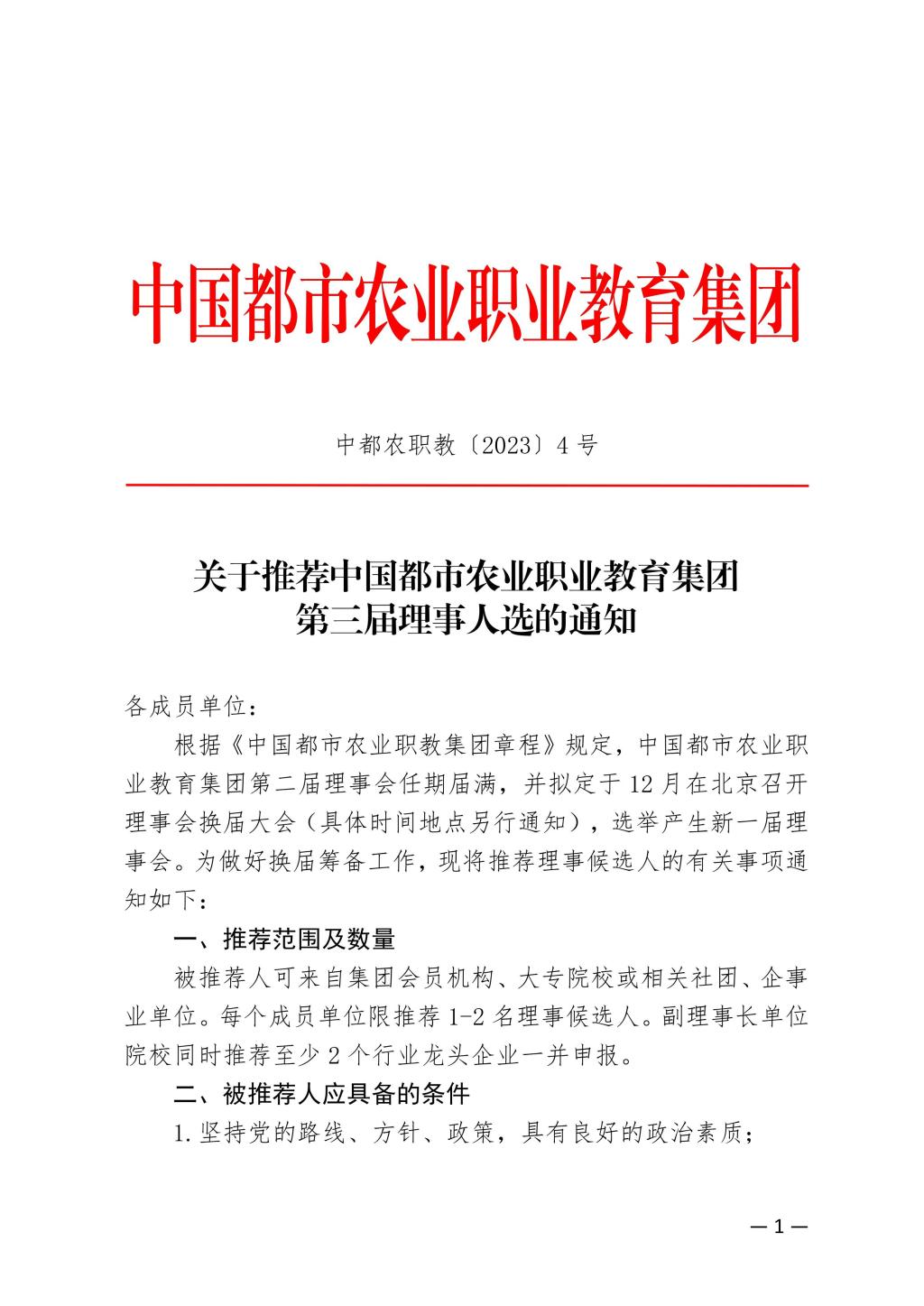 关于推荐集团第三届理事人选的通知(第二届理事会成员)