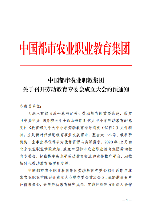中国都市农业职业教育集团关于召开劳动专委会成立大会的预通知
