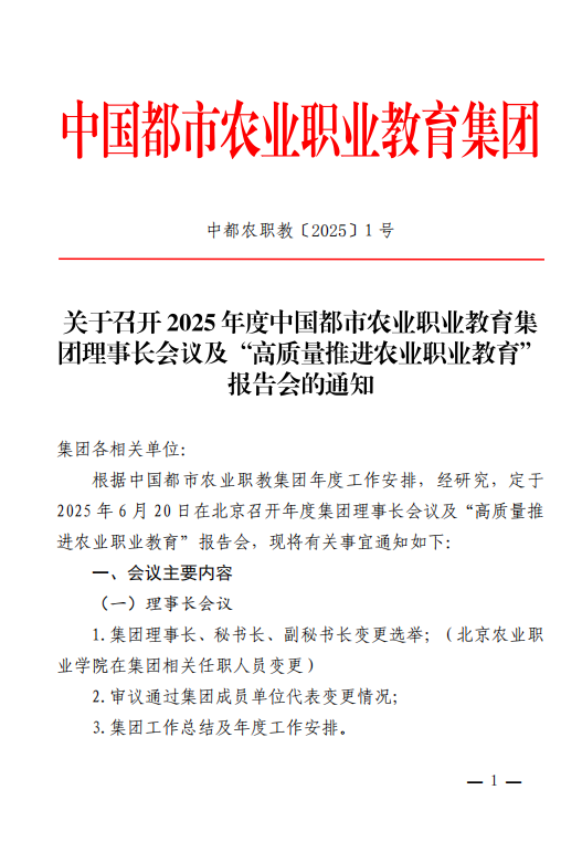 关于召开2025年度中国都市农业职业教育集团理事长会议及“高质量推进农业职业教育”报告会的通知