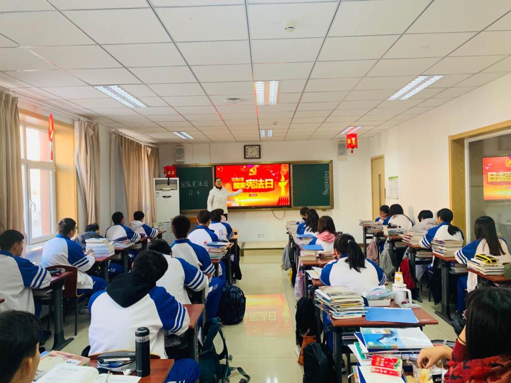 以班级为单位召开“国家宪法日”主题班会,帮助学生了解宪法知识,树立法治观念,增强学生运用法律自我保护的意识。