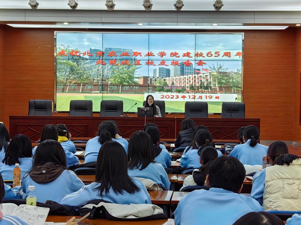 座谈会结束后,校友代表在报告厅向所有七年贯通项目学生进行报告交流。报告会上校友代表分享了自身学业和毕业后的经历,向在校学生分享如何在校期间做好学业和职业生涯规划,鼓励同学们努力学习,珍惜学习的大好时光,扎实掌握专业技能,报告会最后校友代表表示作为农职的一份子,他们为母校取得的成绩感到高兴和自豪,祝福母校的明天越来越好。