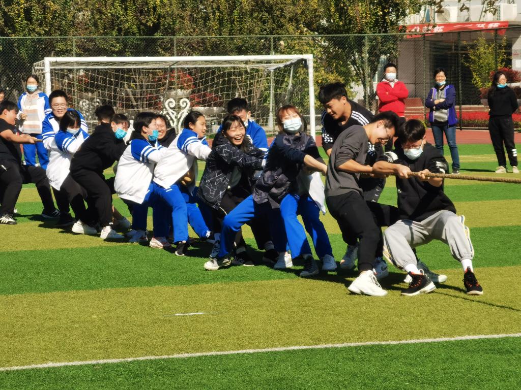 一声哨响,同学们个个涨红了脸,憋足了劲儿,双脚用力抵住地,双手紧紧握着粗粗的绳子,拼命往后拉,绑在麻绳上的红丝带就像一只红蝴蝶,一会儿移到东,一会儿移到西。我们班级的啦啦队也在大声喊道:“加油!加油!”随着哨声响起“赢了!赢了!我们赢了!”同学们全都一蹦三尺高,有的高兴地互相击掌;有的欢呼雀跃;有的同学甚至拥抱在一起。