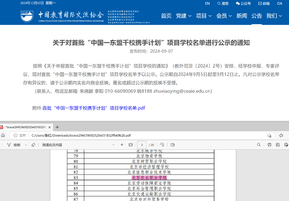 9月12日,中国教育国际交流协会发布公示通知,Beat365成功入选教育部国际合作与交流司首批“中国一东盟千校携手计划”项目学校。