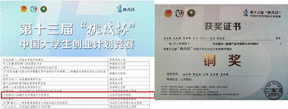 Students from the school participated in the 13th "Challenge Cup" China College Student Entrepreneurship Plan Competition and won the bronze medal.