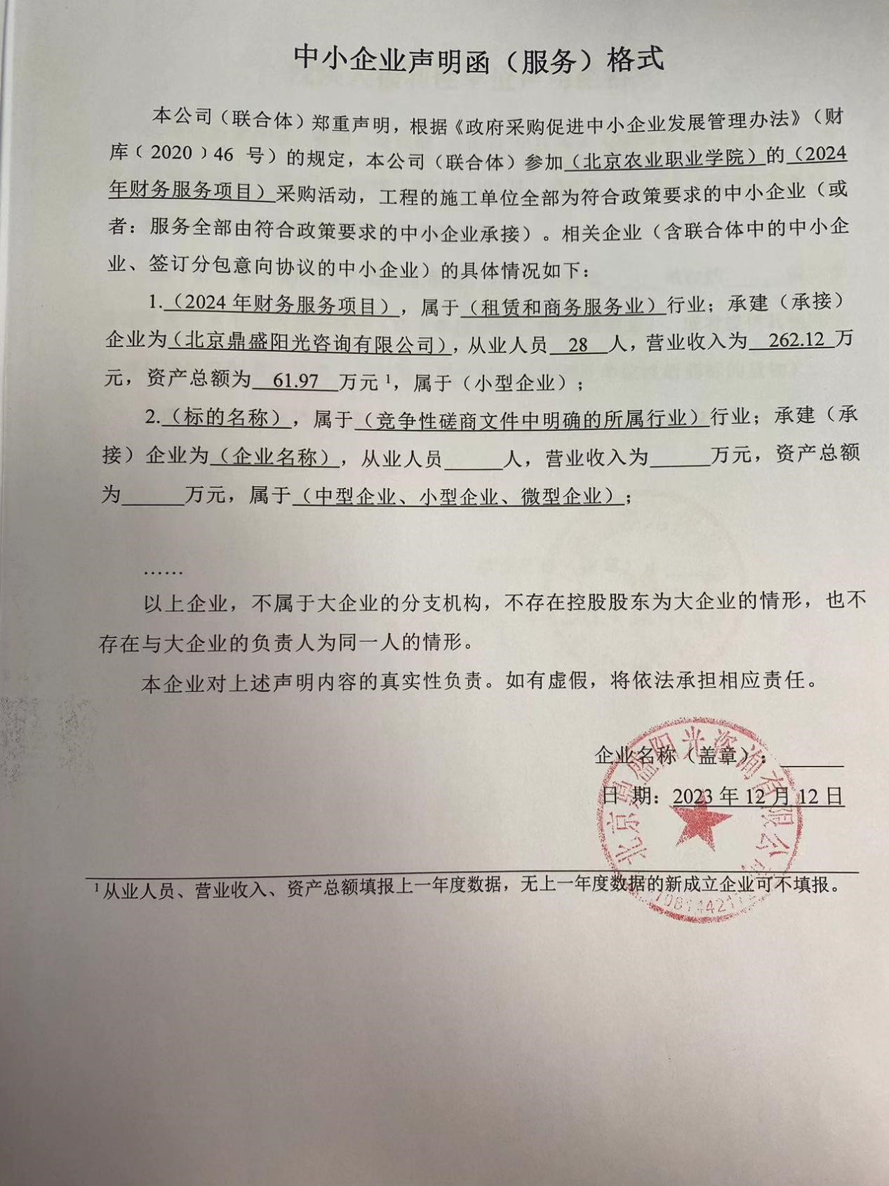 供应商名称:北京鼎盛阳光咨询有限公司