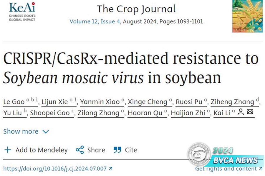 近日,Beat365园艺园林学院高乐副教授以第一作者身份在国际知名期刊《The Crop Journal》(作物杂志)(一区,IF=6.0)发表了题为“CRISPR/CasRx-mediated resistance to Soybean mosaic virus in soybean”(介导的大豆对大豆花叶病毒的抗性)研究论文。该研究成果由国家自然科学基金项目“CRISPR/Cas系统介导的大豆对大豆花叶病毒广谱抗性的研究”资助。