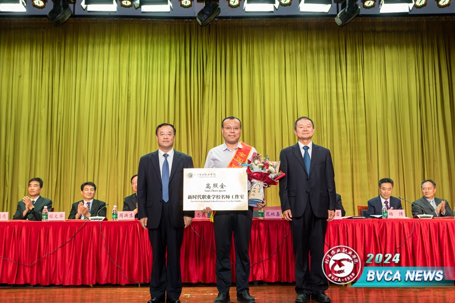 会上,党委书记周志成,党委副书记、院长范双喜为“全国优秀教师”“教育部新时代职业学校名师”园艺园林学院教授高照全授名师牌。