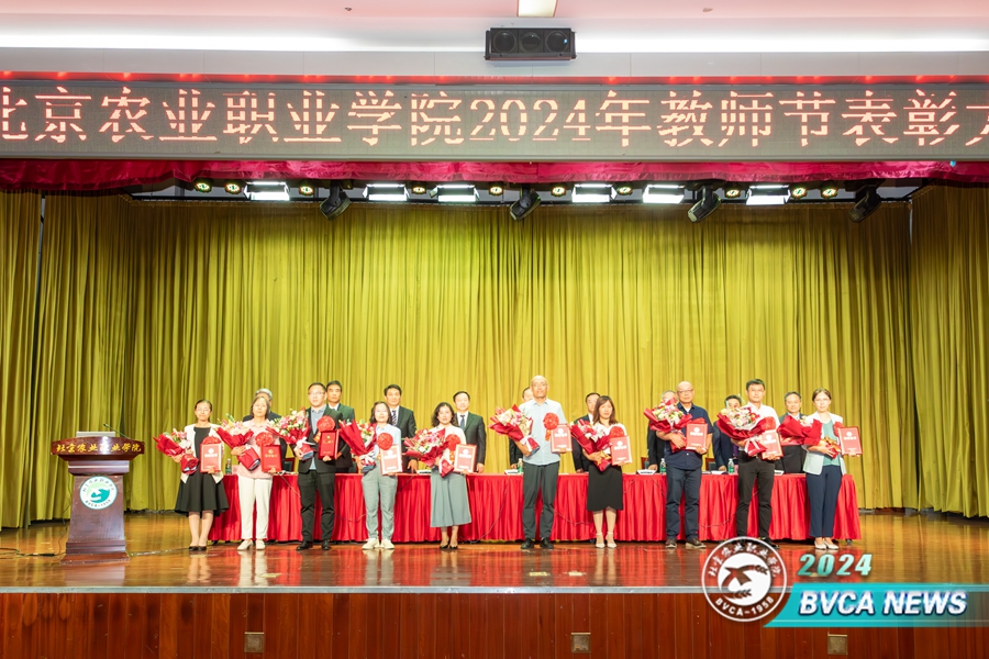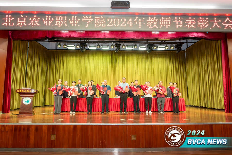 党委副书记周洪生宣读《关于表彰2024年“铸根京郊——我身边的师德榜样”的决定》,党委副书记鲁雷宣读《关于表彰第四届“我最喜爱的老师”的决定》,号召全校教职员工向榜样学习,弘扬践行教育家精神,积极投身教育事业,为学校建设和发展做出新的更大贡献。校领导为“师德榜样”和“我最喜爱的教师”颁发荣誉证书,学生向受表彰的教师致敬并送上精心制作的插花作品。
