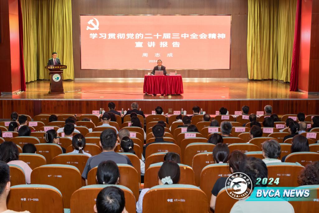 9月10日,学校举行学习贯彻党的二十届三中全会精神宣讲报告会。党委书记周志成作专题宣讲报告。学校领导班子成员、全体教职工和部分学生代表参加会议,党委常委、副院长杨博主持报告会。