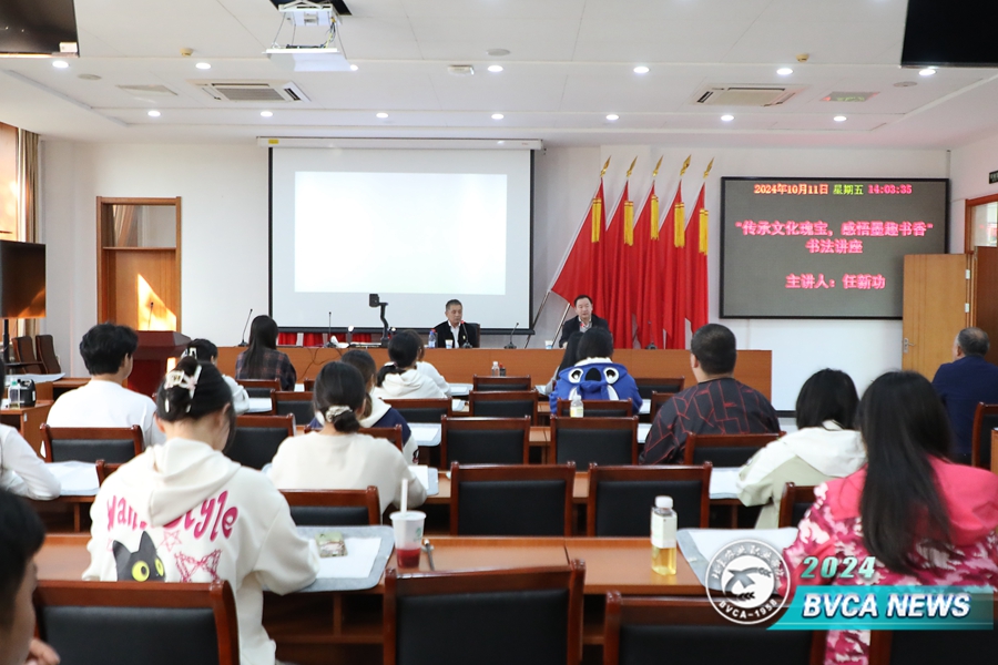 重阳节当日,学校关工委联合校团委、图书馆在图书馆举办“传承文化瑰宝,感悟墨趣书香”专题讲座。本次活动邀请中国书法家协会会员,中国书画联谊会会员,中国黄河书画院专职书法师任新功为青年学生书法爱好者做了《传承文化瑰宝,感悟墨趣书香》的专题讲座,党委副书记、关工委主任周洪生主持,学生书法社团的成员和部分书法爱好者参加了本次活动。