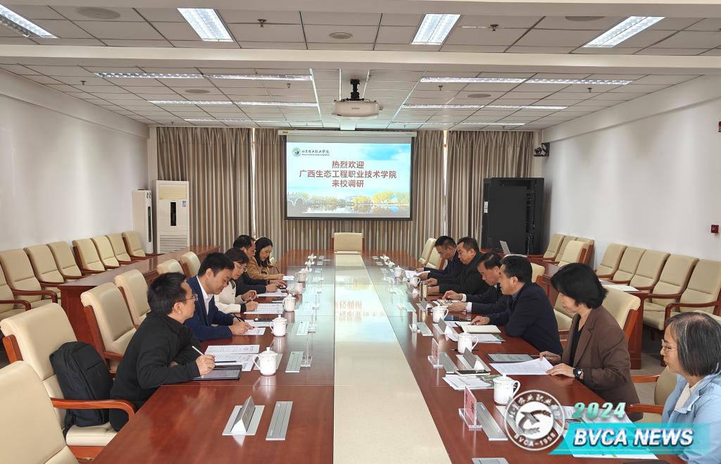 近日,广西生态工程职业技术学院校长韦林一行5人来校调研交流,党委副书记、院长范双喜出席座谈会,会议由党委常委、副院长杨博主持。
