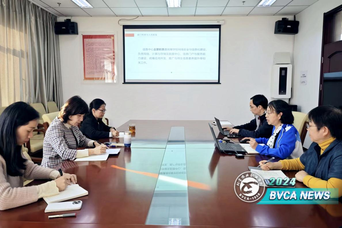 邸燕茹听取汇报并就关注的问题不时同大家展开交流。她充分肯定了信息化建设的重要性和中心的工作成绩,并强调:信息中心是学校信息化工作的归口管理部门,一要全力保障网络安全,落实部门管理责任,确保信息安全;二要不断推进数据治理和流程再造,更好地推动学校治理水平提升;三要持续推动技术融合创新,强化服务学校中心工作、服务师生的意识,切实助力“新双高”建设;四要继续规范项目建设和管理流程,梳理风险点,做好风险防控。