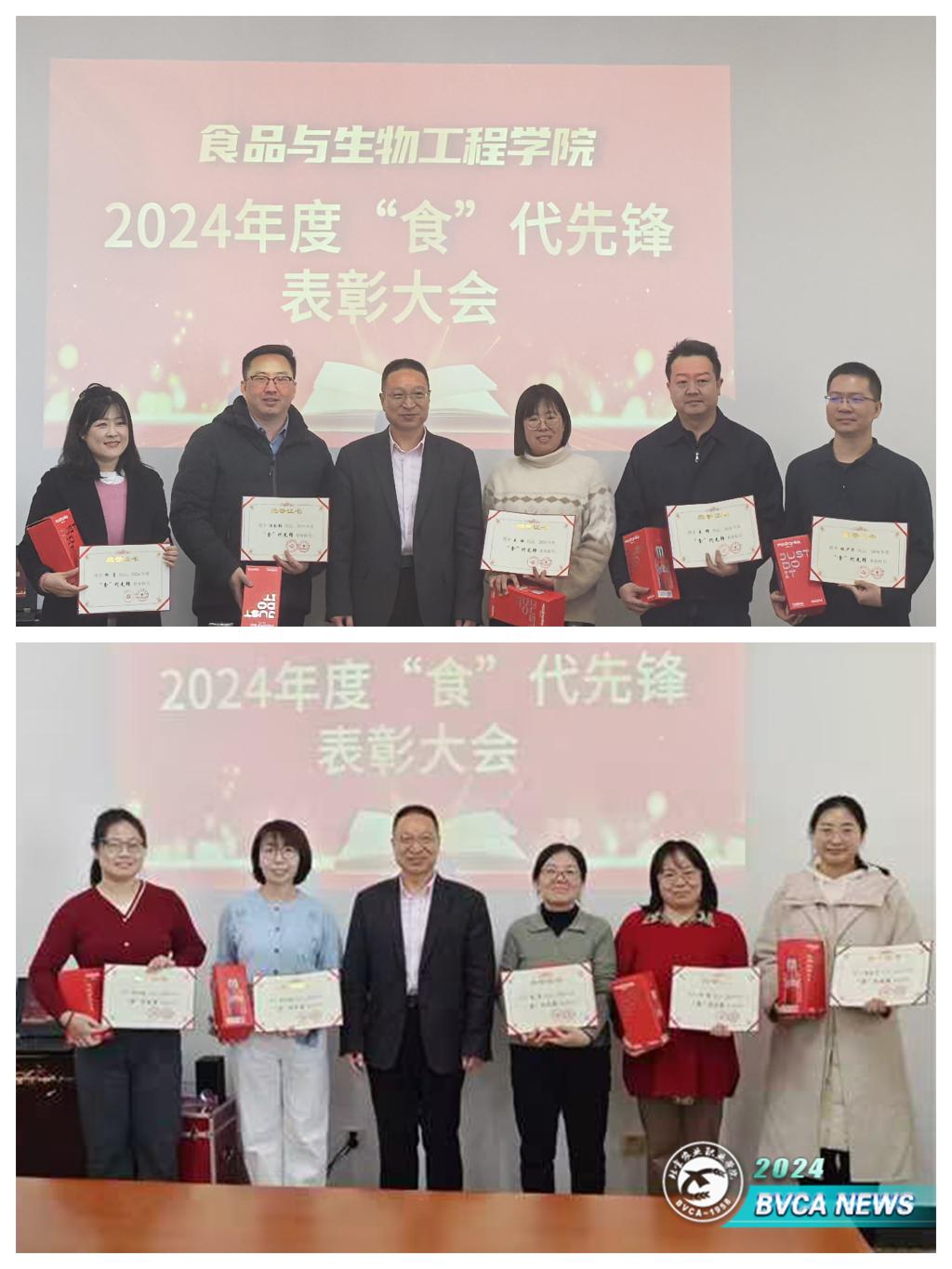 会上,院长句荣辉宣布了经前期全体教职工评选,2024年Beat365在人才培养、专业建设、社会服务等方面做出突出贡献的10名教职工,授予首届“食”代先锋荣誉称号,张德强为获奖教师颁奖。王辉等四名获奖人员代表进行了交流发言,分享了一年来自己的工作成绩、心得体会及今后的努力方向。