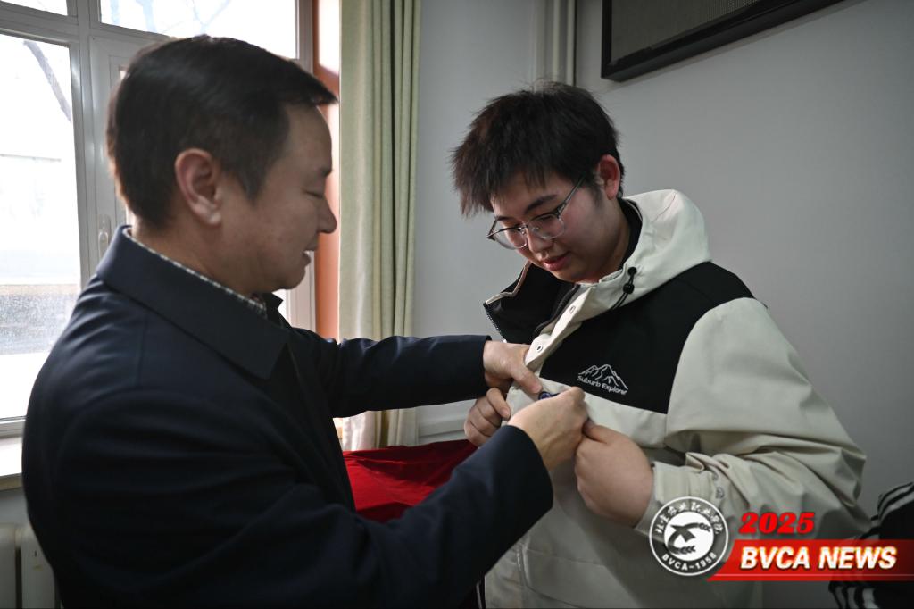 仪式伊始,周洪生和老师们为同学们佩戴了班徽。随后,排水2412班班长赵天赐作为学生代表发言,他表示,感谢校领导和老师们的关心关爱和耐心指导,让我们充满正能量。在戴上班徽的那一刻,一种强烈的归属感与使命感油然而生,它不仅仅是一个标志,更是一份责任,串联起属于我们这个集体的每一个珍贵瞬间。