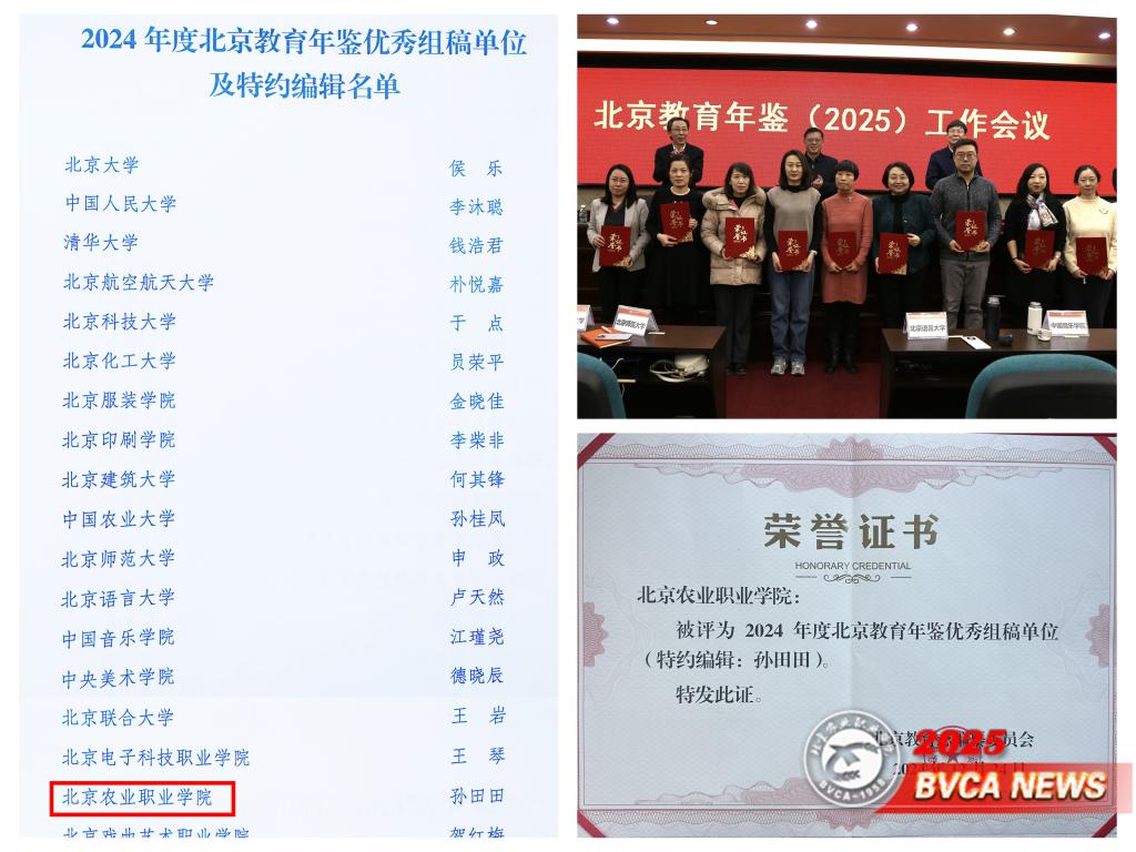 1月13日—14日,北京市教委组织市教育系统200余家单位召开了北京教育年鉴(2025)工作会议,会议总结了2024卷年鉴工作,部署2025卷年鉴编纂任务,并组织了相关培训和研讨,会议通报表扬了2024年度北京教育年鉴优秀组稿单位。学校荣获优秀组稿单位称号。