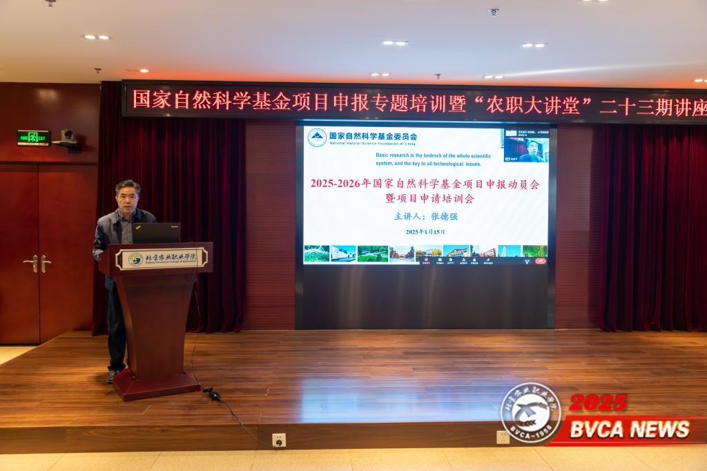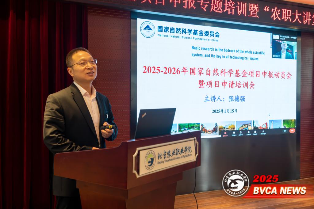 为深入贯彻落实学校第四次党代会战略部署,提升科研人员的创新能力和科研素养,提高科研层次和水平,促进学校科技创新高质量发展。1月15日下午,学校举办国家自然科学基金项目申报专题培训暨“农职大讲堂”二十三期讲座,特邀学校党委副书记、院长张德强教授做2025—2026年国家自然科学基金项目申报动员会专题报告。党委常委、副院长杨博主持。