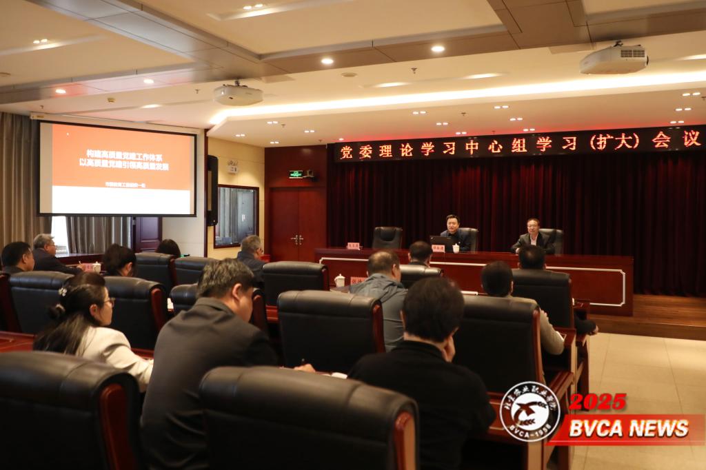 张德强在主持中强调,要以此次学习为契机,着力构建高质量党建工作体系,推动党建与业务深度融合,通过党建工作,引领学校教育教学、科学研究、社会服务、文化传承以及国际合作与交流等方面工作,切实以高质量党建引领学校高质量发展。