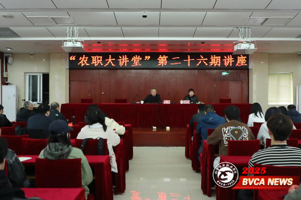 3月28日上午,“农职大讲堂”第二十六期讲座在学校长阳校区举办。讲座由党委副书记鲁雷研究员讲授,学生工作部部长、团委书记纪冰岛主持。