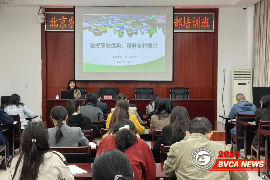 首讲报告后,北京市农业广播学校校长张新华受邀为青干班学员作专题讲座。她以“发挥职教优势,服务乡村振兴”的主题,为学员们讲授了乡村振兴战略含义、青年教师在乡村振兴中的作用、职业教育典型案例、归纳人才培养路径等内容,以生动真实的案例鼓励青年干部学员积极投身新时代乡村振兴战略下的“三农”职业教育。