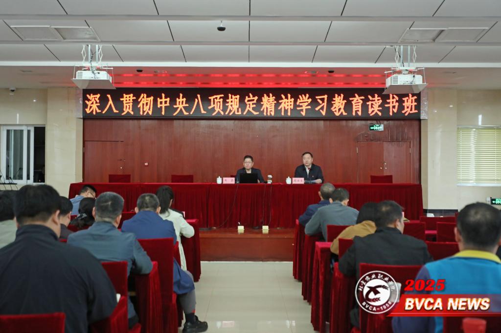 4月14日下午,学校举办深入贯彻中央八项规定精神学习教育读书班暨党委理论学习中心组学习(扩大)会议。特邀市委党校科研处处长韦磊作专题报告,校领导班子成员,全体处级干部,青干班、教工党校培训班、高层次人才意识形态培训班学员,关键岗位干部以及基层党组织书记、党务工作者和党员参加,会议由党委副书记周洪生主持。
