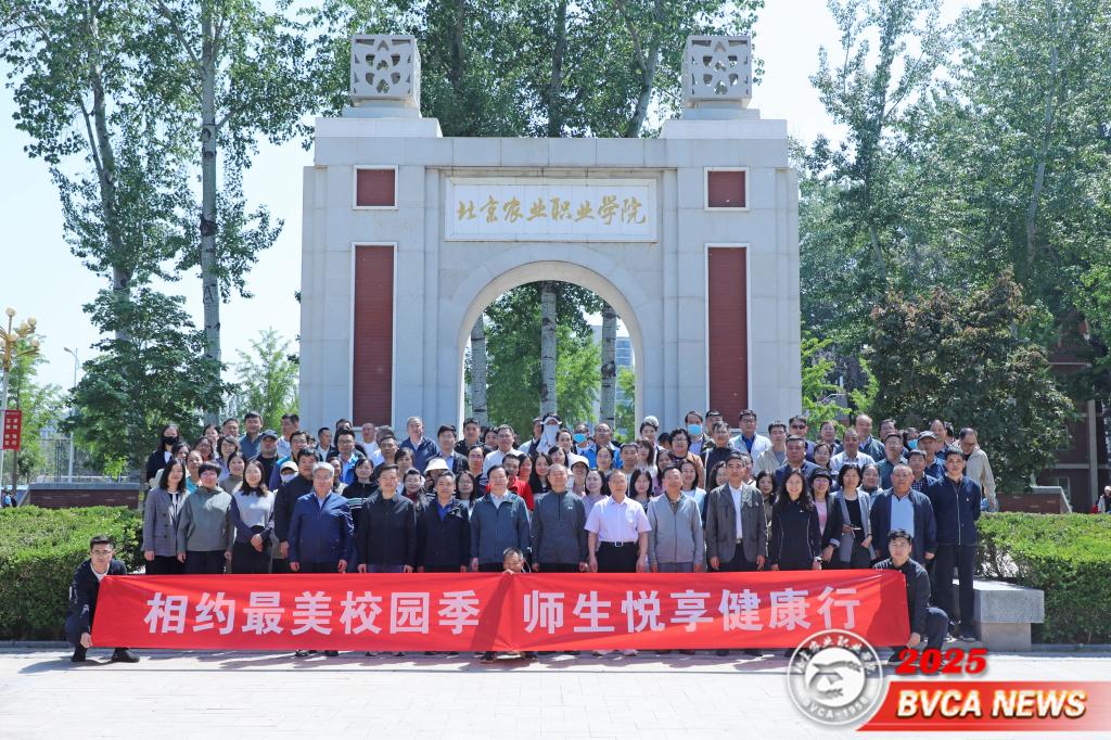 教职工们迈着矫健的步伐,欣赏校园春日美景。本次活动设置了“我知‘农’情”“健康‘农’意”“智耕 ‘农’田”,三个互动板块,师生共同参与了学生社团活动,品尝自产水果,感受农耕文化。