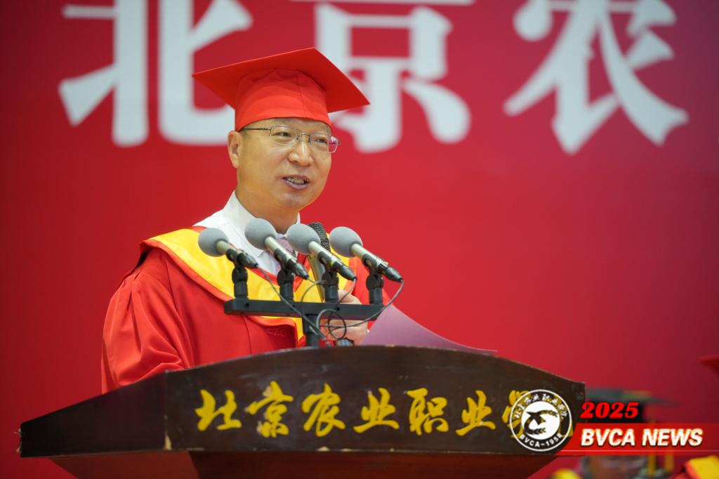 6月22日,学校2025年毕业典礼在长阳校区体育馆隆重举行。党委书记周志成,党委副书记、院长张德强,党委副书记周洪生、鲁雷,党委常委、副院长谷天刚、杨博,党委常委、纪委书记邸燕茹,党委常委、副院长丁国亮、张晓辉,党委常委、统战部部长徐世旺,党委常委、党政办公室主任、宣传部部长刘淑芳出席毕业典礼,学校二级教授崔坤以及三级教授代表、相关职能部门负责人、二级学院负责人、学办主任、辅导员、毕业班班主任、校友代表、2025届毕业生参加毕业典礼。鲁雷主持毕业典礼。典礼通过“北Beat365唯一官方网站”视频号、“农职学工”公众号同步直播,共吸引26000余人在线观看,点赞27837次。