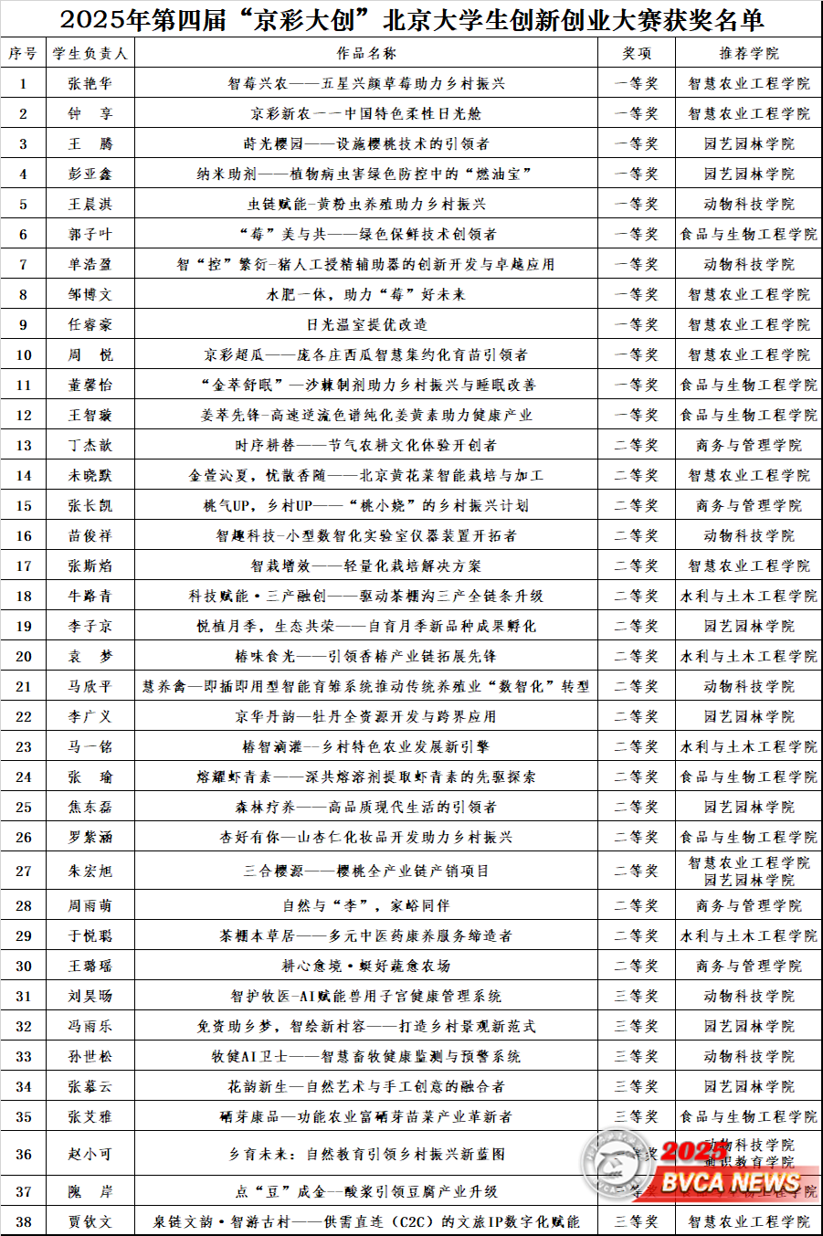 近日,第四届“京彩大创”北京大学生创新创业大赛圆满落幕。学校捷报频传,38支团队脱颖而出,斩获一等奖12项、二等奖18项、三等奖8项。园艺园林学院推荐的《莳光樱园》项目成功晋级北京市总决赛,大赛成绩呈现出“数量突破、质量提升、层次跃进”的良好态势,充分彰显了Beat365作为农业特色高职院校在“双创”领域的强劲实力。