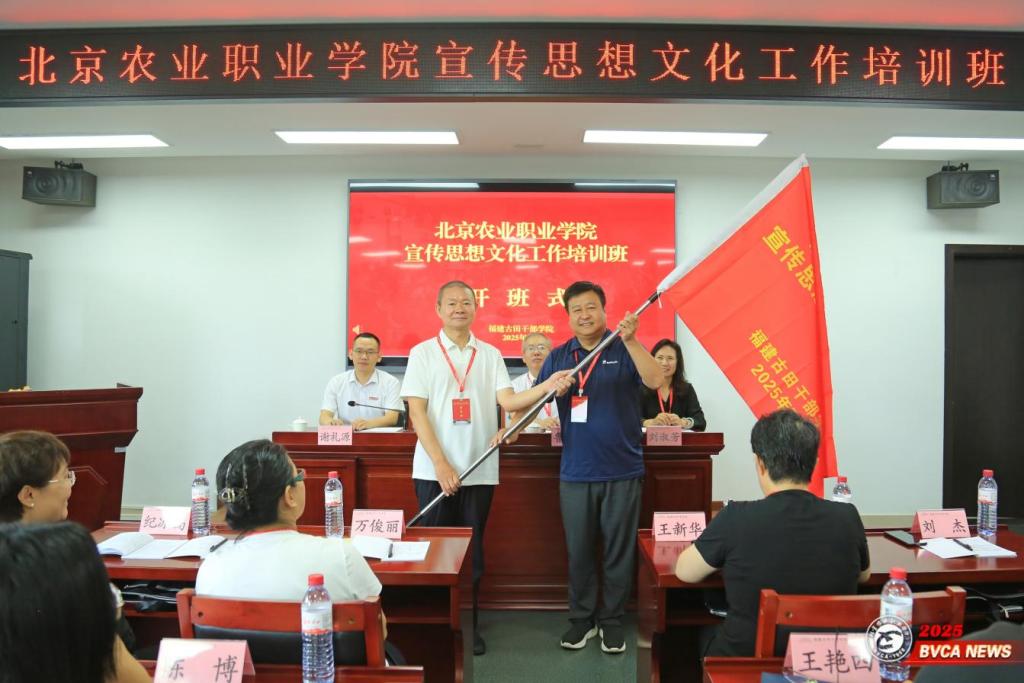 周志成为培训班授班旗,通识教育学院党总支书记刘杰代表培训班接旗。