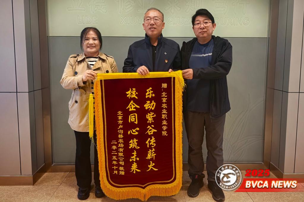10月15日下午,北京市卢沟桥农场有限公司刘辉场长、卓军梅副书记到校赠送锦旗,对国庆期间Beat365志愿者在紫谷伊甸园音乐嘉年华志愿服务中的表现给予高度肯定和表扬。