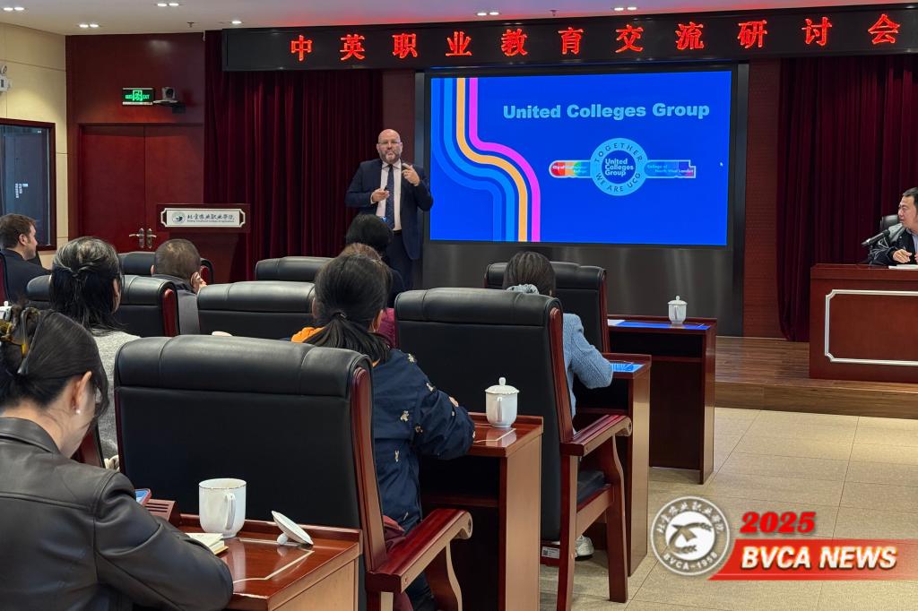 10月17日上午,中英职业教育交流研讨会在长阳校区顺利举行。学校二级学院负责人、系主任、专业主任、外事专员,及国际合作与交流处、学生国际交流服务协会全员参会。英国联合学院集团首席执行官兼集团总校长斯蒂芬·戴维斯应邀作“英国职业教育发展历程和创新”专题讲座,双方围绕专业建设、师生发展等内容深入交流,并达成多领域合作共识。