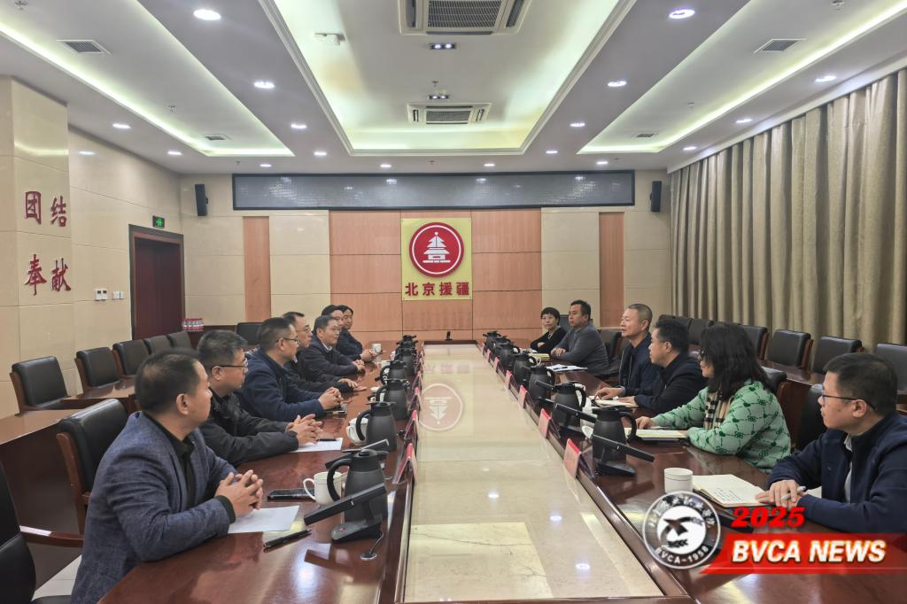 调研组拜访北京市支援合作工作领导小组新疆和田指挥部,汇报学校援疆工作考虑和调研情况,双方就援疆和田项目落地细节开展深入磋商。北京市援疆和田指挥部党委书记、指挥,和田地委副书记李志遂参加座谈。