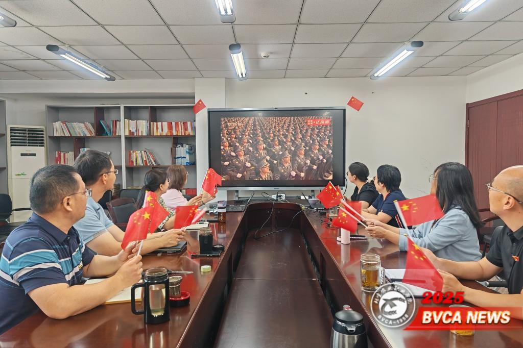 纪念抗战胜利80周年大会是对历史的庄重回望,更是对和平与发展的坚定宣示。教务处组织部门人员进行了集中观看,当看到威武之师的风采,看到自主创新的国防装备,大家心潮澎湃,深刻感受祖国强军之路与复兴伟力。本次阅兵不仅是国防实力的集中展示,更是民族复兴的生动注脚。大家纷纷表示作为教育管理工作者,要把阅兵激发的爱国情、奋斗志转化为服务师生、提升教学质量的行动,把“四个自信”融入人才培养全过程,为强国建设输送堪当大任的时代新人。