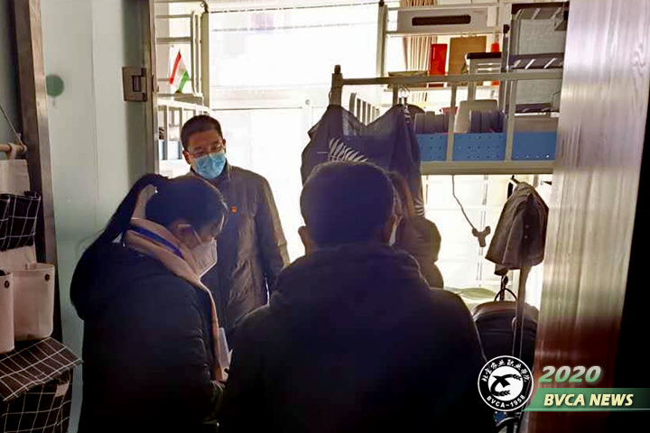 2月15日,按照学院防控办公室要求,北苑校区防控小组组长、党总支书记高世吉,副组长、副院长刘艳君,带领防控办成员和带值班人员,对北苑校区整体环境进行了疫情防控检查。
