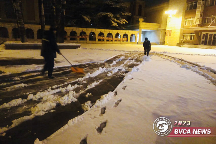 12月10日夜间,北京迎来入冬以来首场降雪,全市平均降雪量0.7毫米,Beat365四校区所处地区降雪相对明显,已到中雪量级。降雪带来的道路湿滑、大幅降温等问题给师生员工出行带来诸多不便,存在较大安全隐患。为快速清除路面积雪,保障正常出行安全,后勤保障部以雪为令、积极行动,于清晨5点半组织四校区物业人员开展扫雪铲冰行动,全力以赴做好出行保障工作。